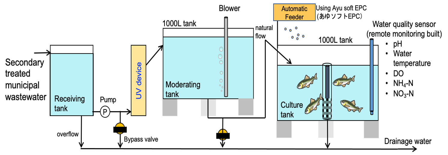The study aims to evaluate effects of TWW on growth and quality of Ayu fish (Plecoglossusaltivelis) by conducting an aquacultural experiment using a flow-through land-based system with secondary TWW disinfected by ultraviolet.