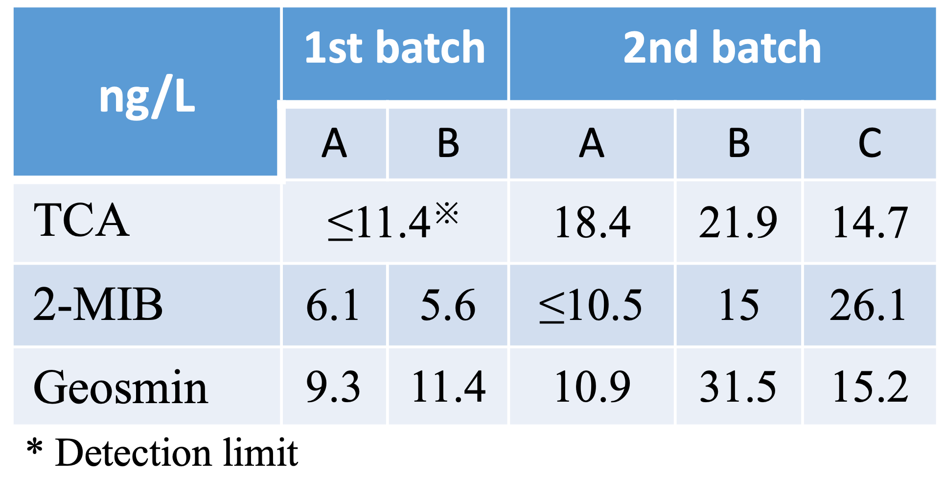 Table 3 Earthy/musty odor concentrations in culture water