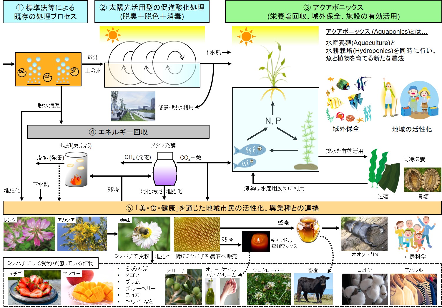 Wastewater from the Ayu growing tank is treated at the wastewater treatment plant. This success opens up the prospect to develop a novel recirculating fish farming model (new land-based aquaculture model) at wastewater treatment plants to utilize the treated wastewater as well as the advanced wastewater treatment technologies.