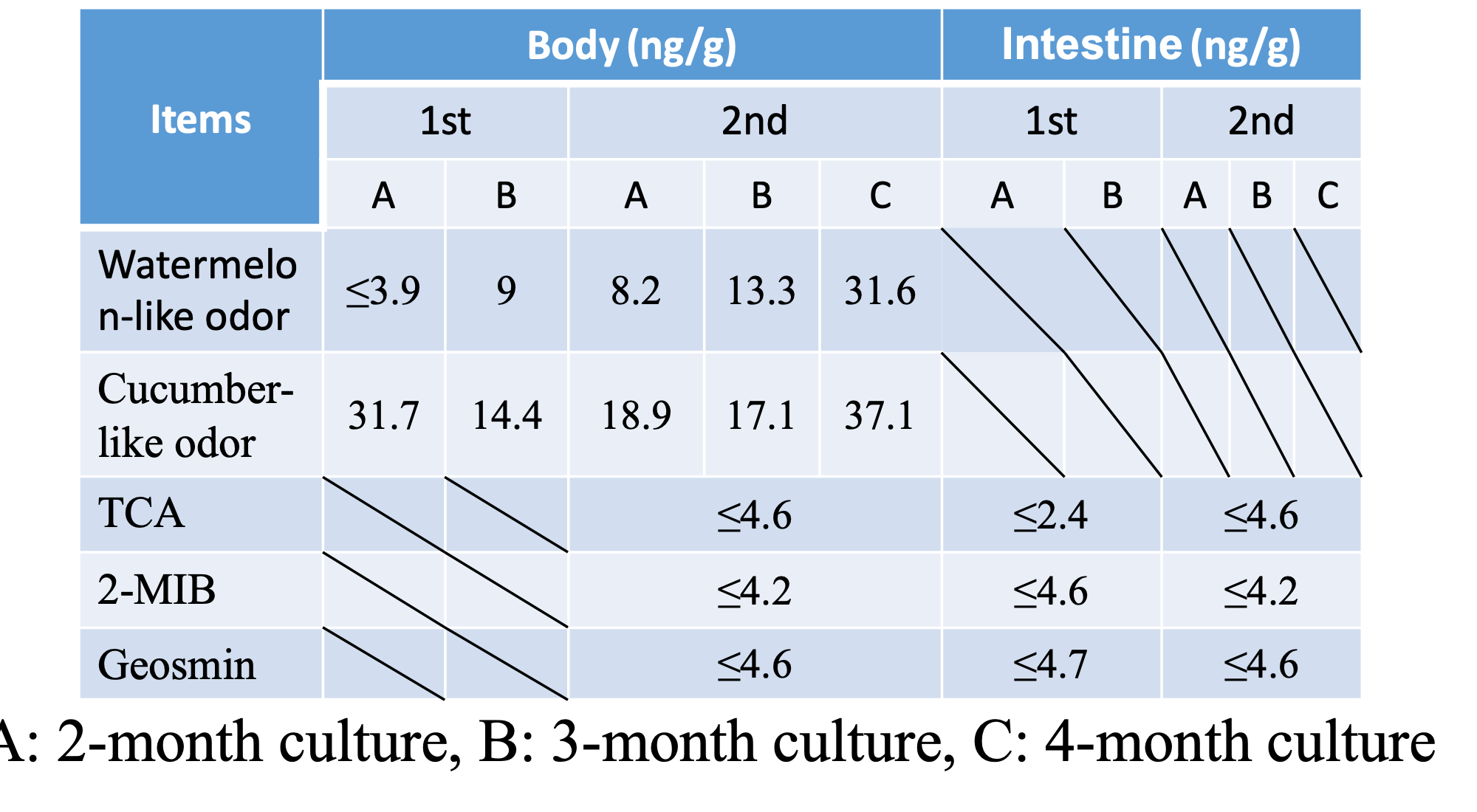 Table 3 Earthy/musty odor concentrations in culture water